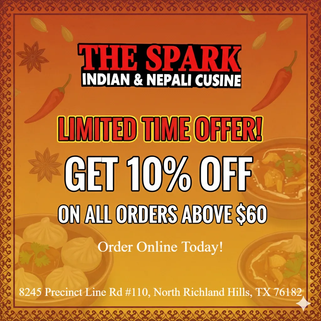 Welcome to The Spark, where tradition meets taste in every bite. We offer a blend of authentic Indian and Nepali flavors,inviting setting. Each dish is thoughtfully prepared using fresh ingredients and classic recipes. Our goal is to share the warmth of our culture through flavorful, homestyle meals. Whether dining in or taking out, every visit promises a satisfying experience. Let The Spark be your go-to spot for delicious moments and heartfelt hospitality.